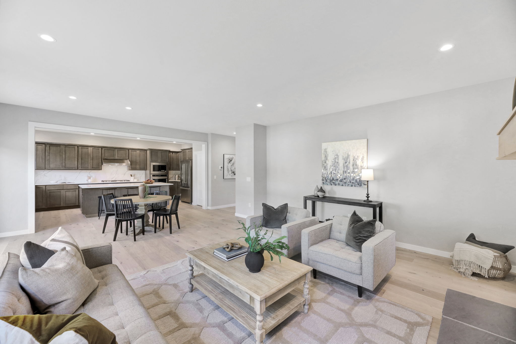 The Peak floor plan showcases a seamless blend of modern comfort and Pacific Northwest charm. With flexible 4-5 bedroom options, this layout comfortably accommodates both families and guests. The kitchen features a large island with great cabinet space, perfect for entertaining and for family gatherings.